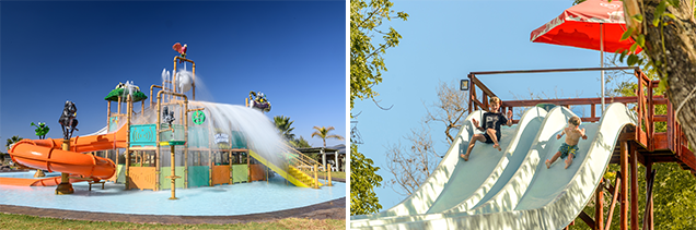 Cool off in sparkling pools, waterslides, or splash zones. The Kingdom Resort offers Splash Kingdom for family-friendly waterpark fun. Slide into the holiday fun with Hazyview Cabanas slides and Dikhololo’s supertubes. Cayley Beach Club brings a floating waterpark to life, and San Martinho Beach Club delivers 13km of lagoon-side adventure for sandcastle building, paddling and watersports. Resorts with dams offer safe water fun for all ages.