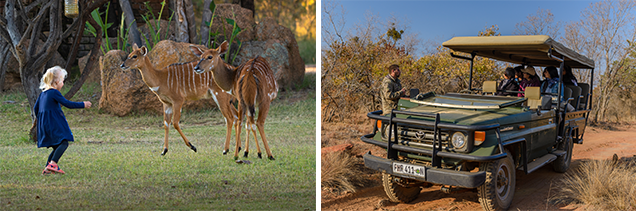 Get closer to nature with guided game drives at Waterberg Game Park with the Rare Game Experience, also available at The Kingdom Resort, where little ones meet rare and friendly species in a safe, educational environment. At Dikhololo, harmless wildlife roams freely, adding a touch of safari magic to your stay.